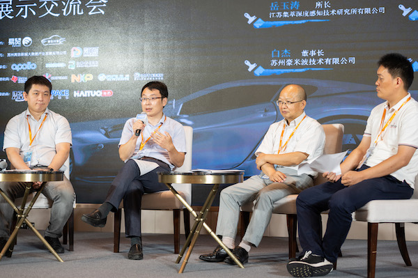 从左至右依次为,承泰科技总经理陈承文、集萃感知所长岳玉涛、苏州豪米波董事长白杰、湖南纳雷科技CEO周坤明