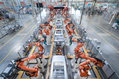 互联网、大数据、人工智能与实体经济融合持续深化,以制造业数字化、网络化、智能化为标志的智能制造,成为工业化和信息化两化深度融合的切入点和主攻方向。江淮汽车积极开展两化融合,在转型升级方面勇于实践,取得新突破,2017年在中国两化融合大会上被授予“创新型企业”称号。2017年11月24日,随着最后一批6台新骏铃轻卡的下线,江淮老轻卡车间正式完成历史使命。不久后,新港基地全面建成投产,轻卡高端制造迎来“提速换挡”。冲压、焊装、涂装、总装,直至产品下线、试验,江淮轻卡的每一步制造过程都注入了智能科技的力量。冲压车间拥有2条封闭式全自动化冲压线,6000吨重型冲压机可对底盘一次冲压成型,提高全车刚性和强度,从根本上保证超强的承载能力。焊装车间拥有7条驾驶室拼焊线,101台机器人,自动化率高达95%,确保白车身以高效率、高精度、高质量下线。涂装车间在32台喷涂机器人、8台开门机器人、4台底涂涂胶机器人的工作下,实现喷涂过程全自动,经过电泳、电泳烘干、B1、B2、闪干、清漆、面漆烘干等工序,让江淮轻卡即使经过长久使用依旧光亮如新。总装车间汇集了中国和世界各地的高精尖元件,物流配送机器人也在一刻不停地忙碌着,再经过工程师的调教匹配,一辆辆高品质的江淮轻卡迎来下线时刻。